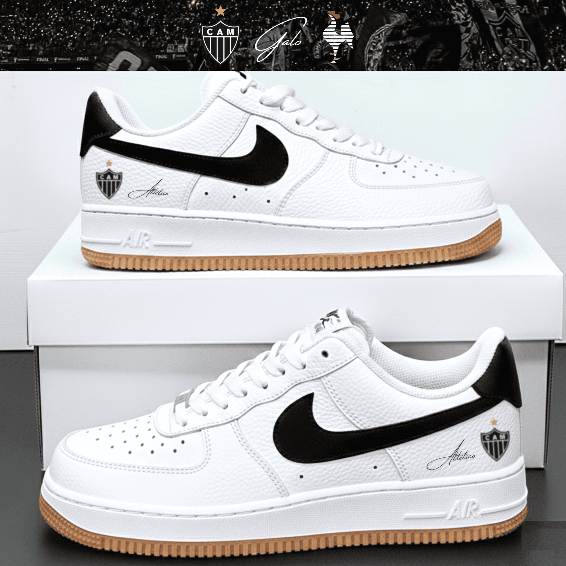 Exclusivo: Tênis Air Force White Black Obsidian Signature Customizado Galo 2026 + *BRINDE 1x Caneca Oficial* - EDIÇÃO LIMITADA